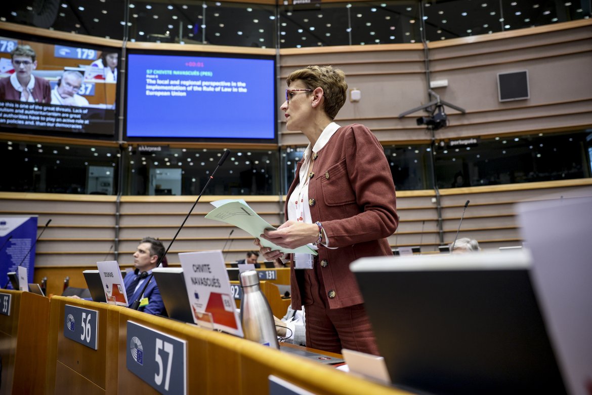 La presidenta Chivite propone “más democracia” europea contra las amenazas globales, en su intervención en el Pleno del Comité de las Regiones celebrado este miércoles en Bruselas.