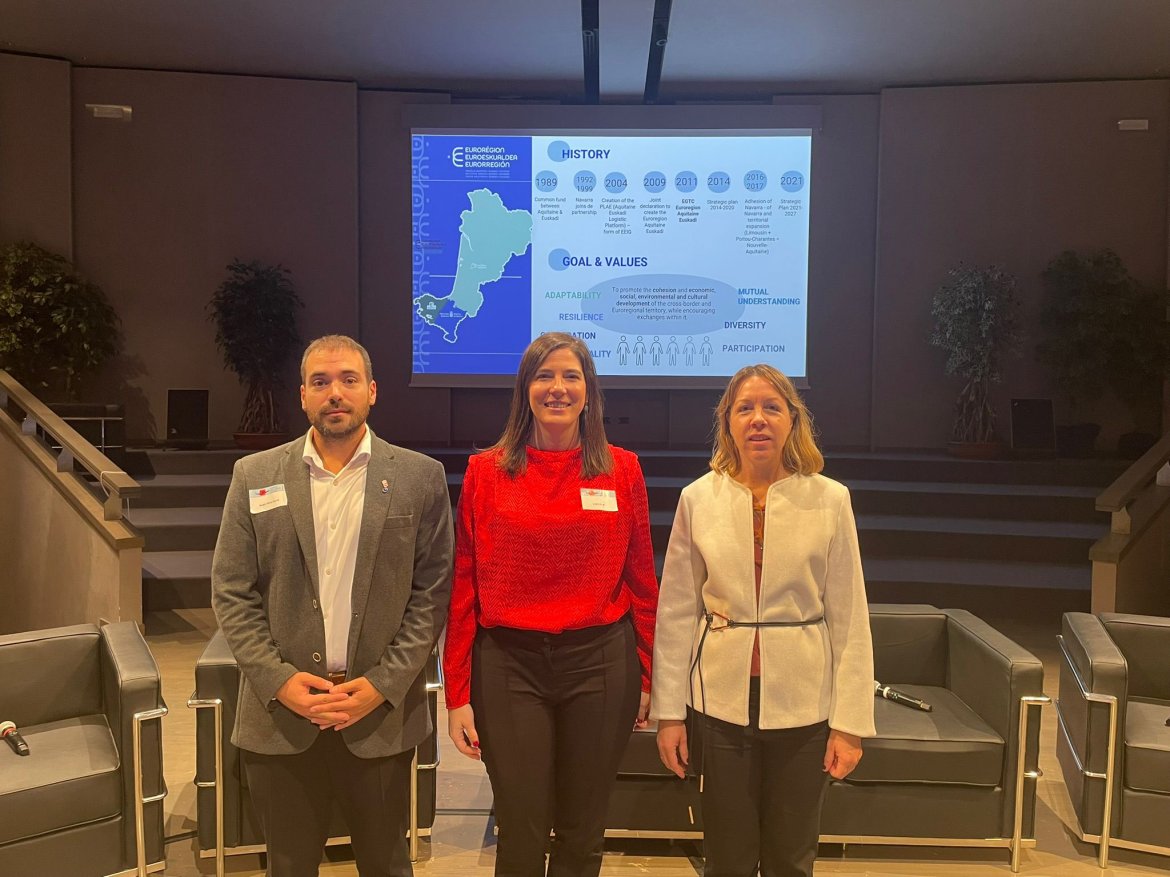 A la misma también ha acudido la directora interina de la Euroregión Nueva Aquitania-Euskadi-Navarra, Leyre Azcona, con el objetivo de presentar la EGCT como un caso de éxito, organismo este cuya presidencia ostenta Navarra hasta marzo 2026 y debemos recordar que desde el pasado 12 de noviembre, Navarra compatibiliza con la presidencia de la Comunidad de Trabajo de los Pirineos.